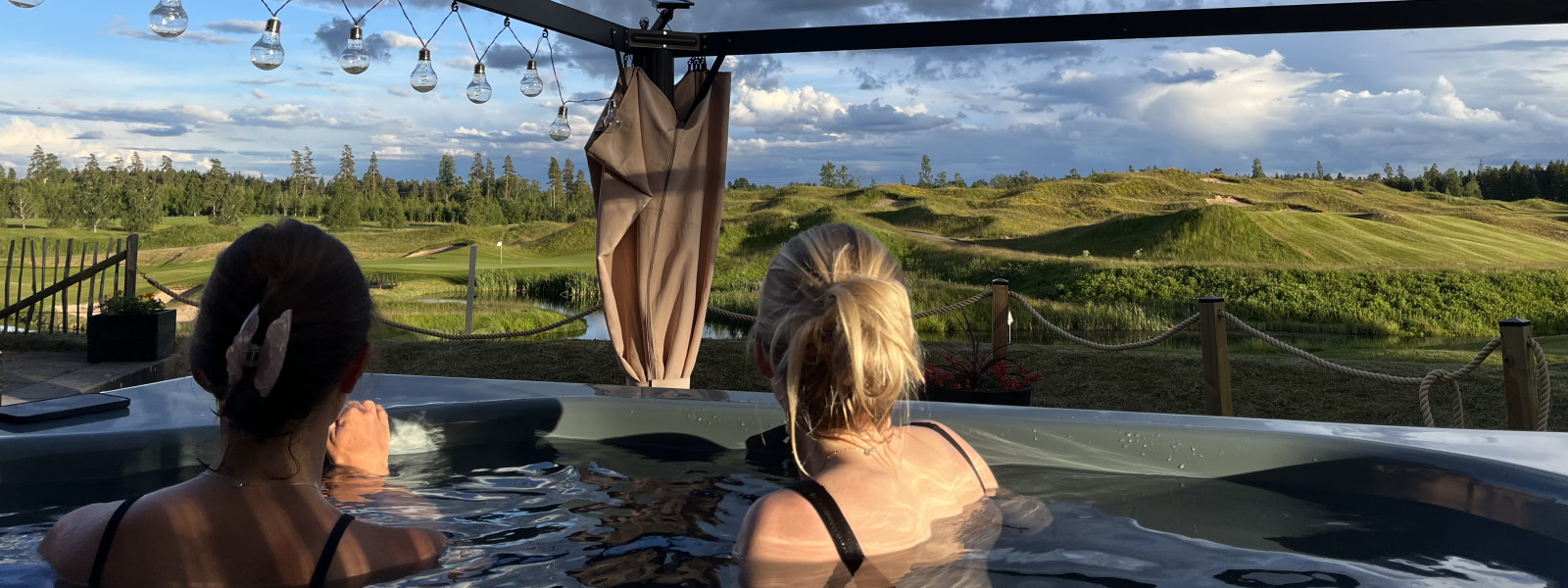 Våran badtunna ligger i anslutning till vårt klubbhus med otrolig utsikt över vår vackra golfbana!